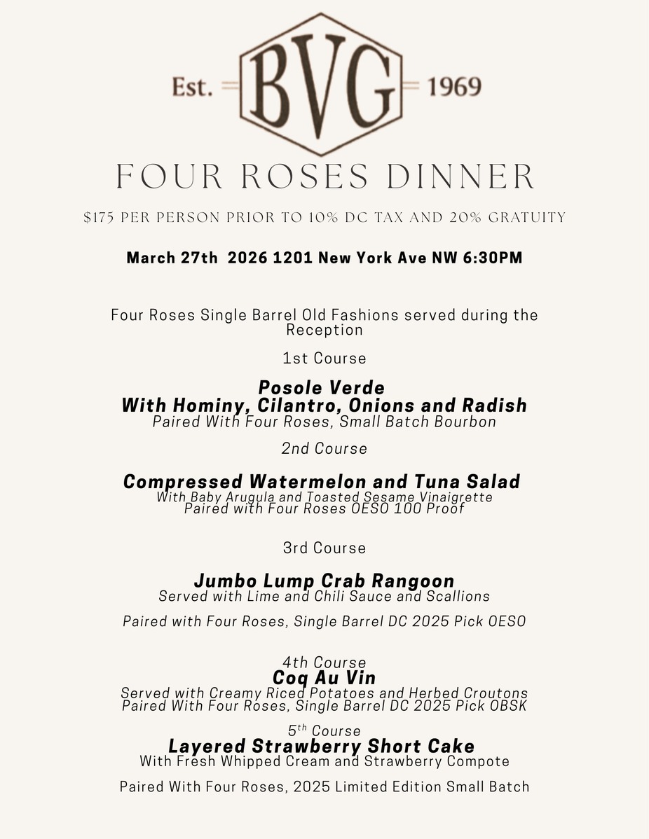 6:30pmFour Roses DinnerFriday, March 27th, 2026